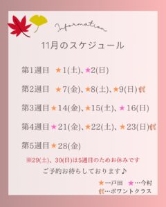 今月もレッスンは4週分開講です!お盆の期間もお時間変わらず開講いたします。
