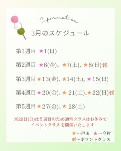 9日(日)と23日(日)はポワントクラス有りです🩰