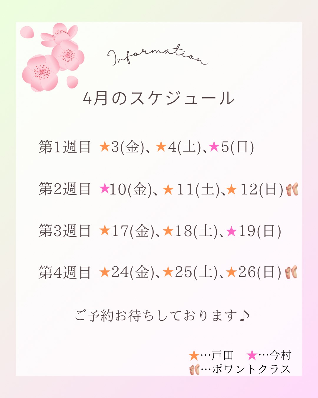 2026年4月レッスンスケジュール